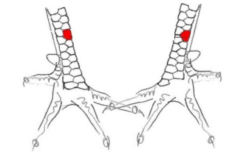 Đây là loại vảy đặc trưng với ba vảy nằm sát nhau theo hướng dọc, và chúng có thể xuất hiện ở các vị trí khác nhau trên chân gà, tạo ra các biến thể độc đáo như: